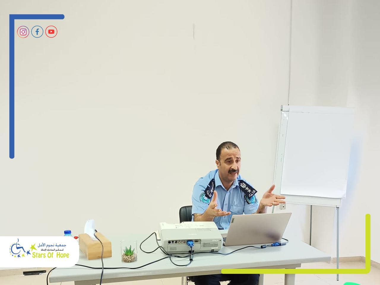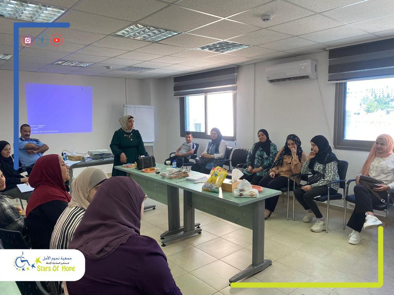 ورشة خدمات الحماية في الشرطة الفلسطينية November 5, 2024 أنشطة يستعرض هذا الألبوم مجموعة من الصور لورشة توعوية نفذتها جمعية نجوم الأمل بالشراكة مع إدارة حماية الأسرة والأحداث حول الخدمات التي تقدمها الإدارة لحماية الأشخاص ذوي/ات الإعاقة بما في ذلك الأطفال منهم، بحضور عدد من الأشخاص ذوي/ات الإعاقة وأهاليهم.